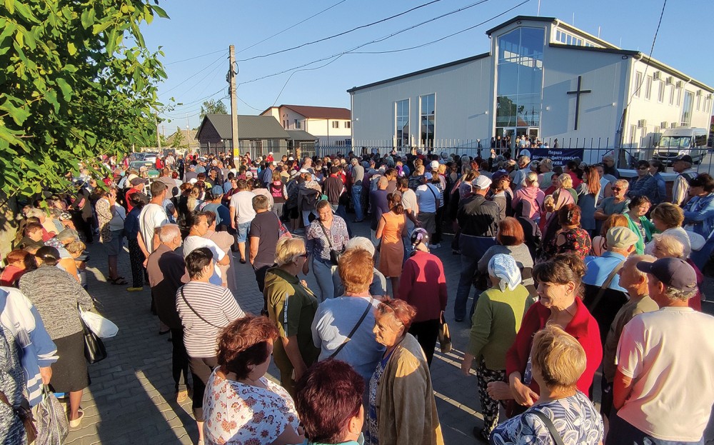 Западно от Одеса, членовете на Първа църква Билгород-Днестровски освещават нова сграда четири дни преди инвазията на Русия през 2022 г., след което бързо я преустройват: стаята за младежи се превръща в склад за дрехи, детската стая в килер за храна.