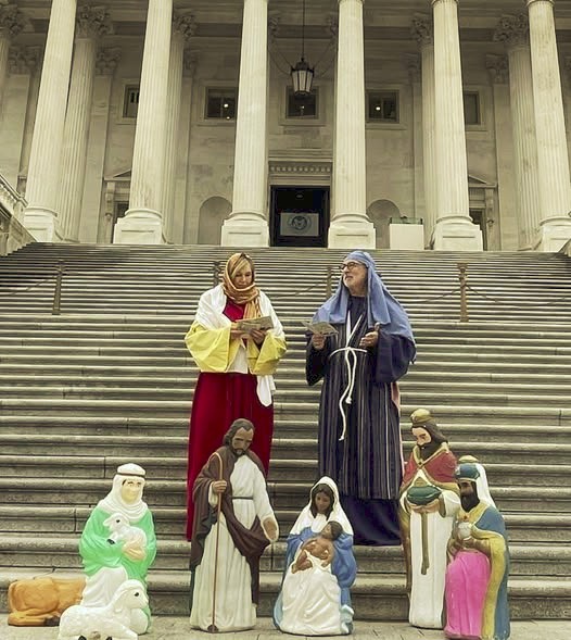 За първи път в историята сцена на Рождество Христово беше изложена на стъпалата на Капитолия във вторник, отбелязвайки, както организаторите казват, крайъгълен камък за религиозната свобода и Първата поправка.