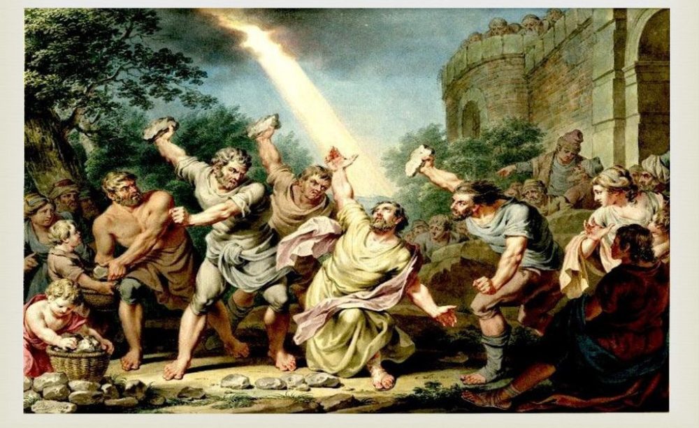 И Стефан каза: „Ето, виждам небесата отворени и Човешкия Син, Който стои отдясно на Бога.“ (ст. 56), с други думи, аз виждам, че Бог е свидетел на истината, която ви казвам. И тези му думи толкова разгневиха тълпата, че те си запушиха ушите и го убиха с камъни.